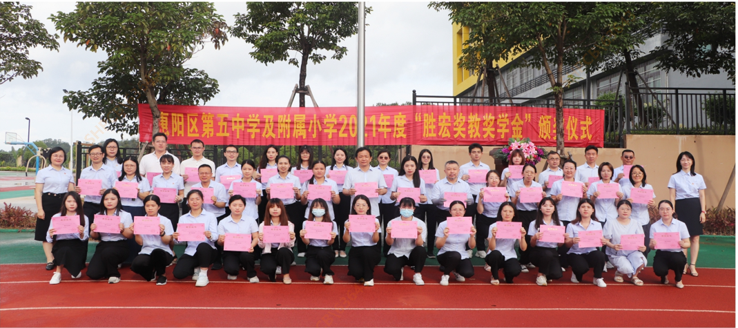 为传承尊师重教的中华民族优良传统,营造崇学尚学之风,助力惠阳区第五中学及附属小学(以下简称惠阳五中)提高教学水平,我司于2020年8月在惠阳五中设立“星空电竞奖教奖学金”,从2021年至2025年,连续五年每年捐赠人民币50万元,其中每年40万元用于奖教,10万元用于奖学,捐赠总额为250万元。2022年6月20日上午,为表彰先进,树立榜样,惠阳五中全体师生齐聚小学部田径运动场,隆重举行2021年度“星空电竞奖教奖学金”颁奖仪式,人力资源总监王耘代表星空电竞科技参加了此次颁奖仪式。